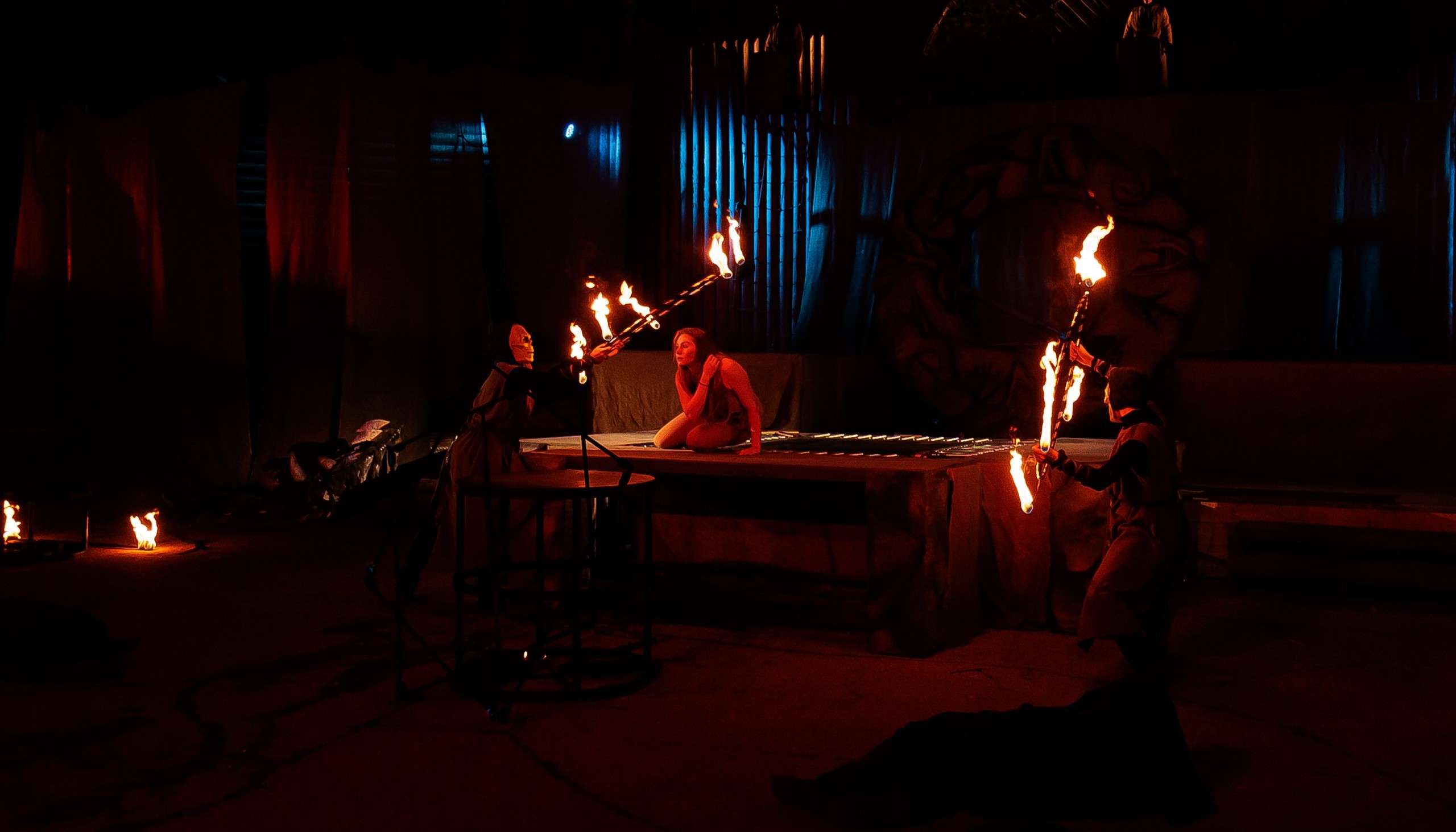 - Яркое огненное шоу. Такое возможно только в уличном театре !