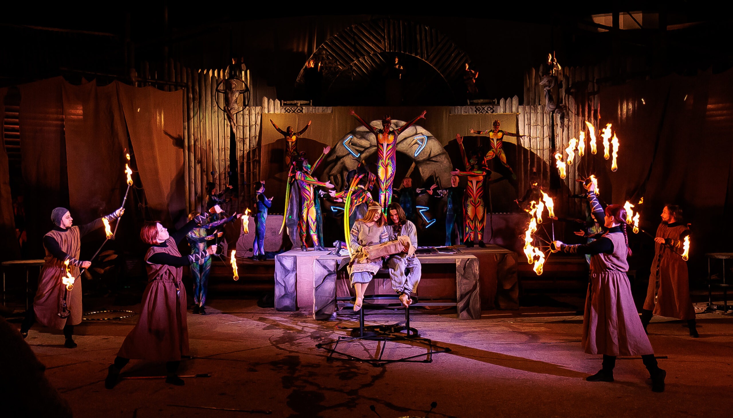 Загадочное вплетение сюжетов древних легенд, мифов и сказаний в историю рождения и становления Новгорода, дополненное уникальными мистическими декорациями, костюмами, музыкой, танцами — окутают Вас аурой волшебства и таинственности.